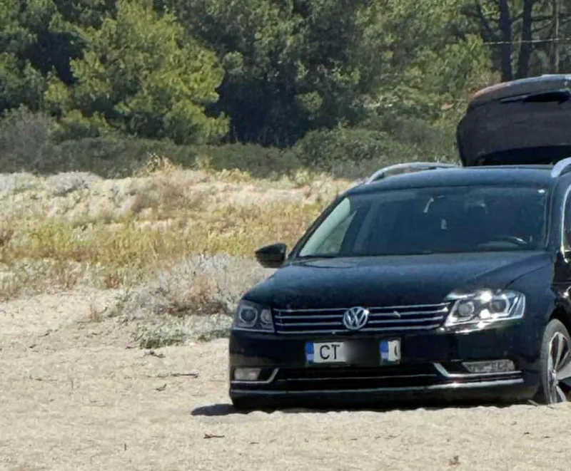 Ajuns pe o plajă mare și aproape pustie din Halkidiki, constănțeanul a intrat cu Volkswagen-ul Passat break pe nisip până în apropierea apei Mării Egee.