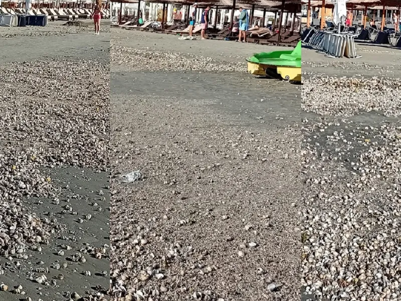 Urmările furtunii de pe litoral. Plaja plină de scoici, apa este rece și are miros foarte urât