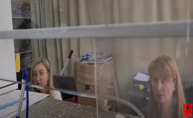 Cel care filmează caută un polițist la care să depună o plângere. Din birouri apare o doamnă tot fără mască (minutul 15.00). Doamna pretinde că merge la toaletă și că stă singură în birou.