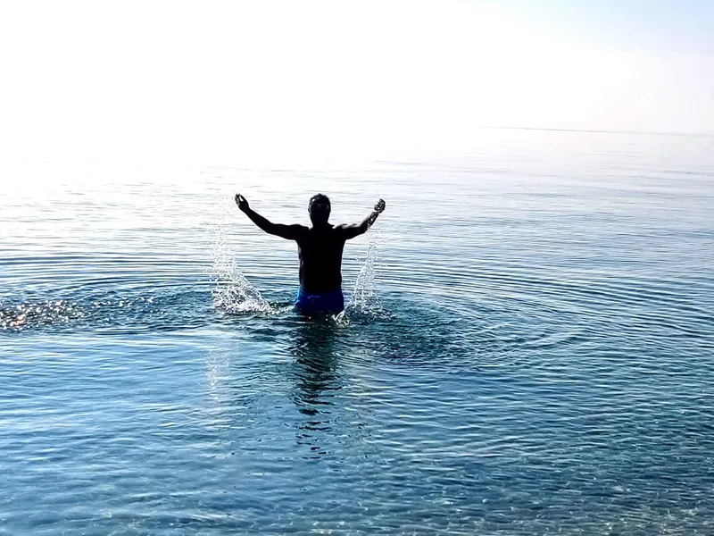 FOTO&VIDEO Sezonul în Thassos a fost deschis de români. Plajă și băi în mare la început de ianuarie