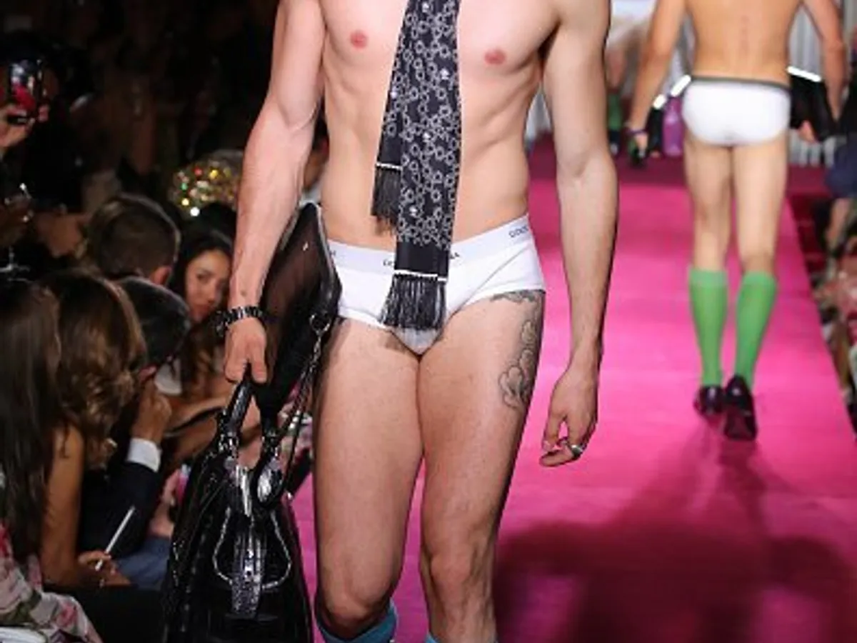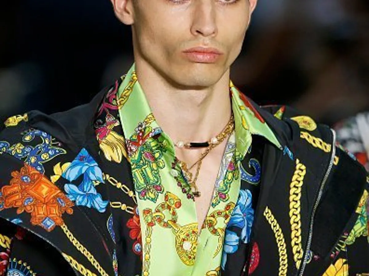 Donatella Versace a încercat să îmbrace un bărbat a cărui masculinitate nu este provocată de dantelă sau motive florale. Bărbatul Versace este pregătit să meargă la birou în costum perfect, dar lasă cămașa descheiată pentru a lăsa să se vadă un tricou Versace care ”citește” un ziar tabloid cu titlul ”Versace în sfârșit vorbește”.