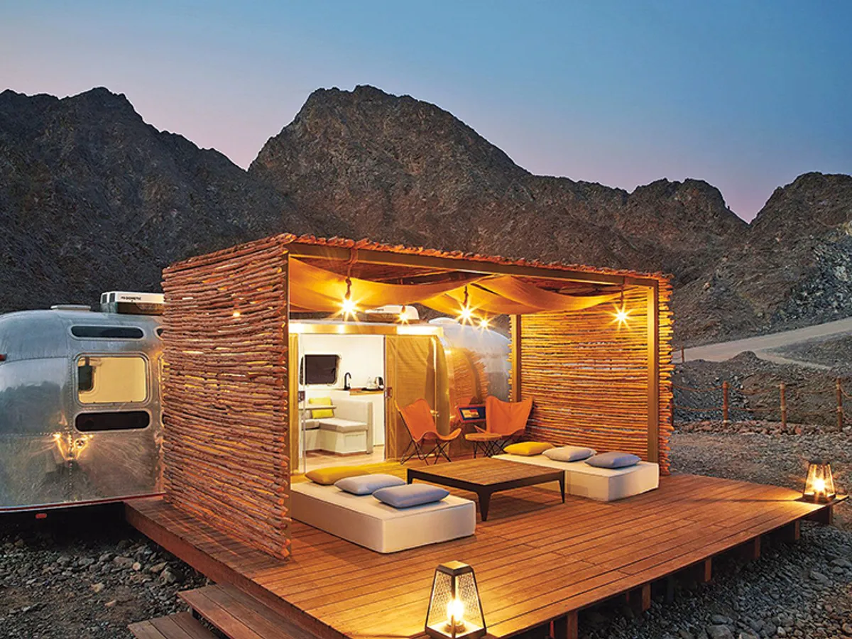 Pentru cei care își doresc să se relaxeze total și să privească stelele dintr-un cadru inedit, la Hatta există o zonă cu rulote originale Airstream.