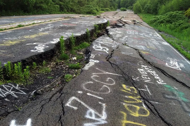 Șoselele „spintecate” de gropi din Centralia au rămas doar ținta pasionaților de graffiti - Foto: Profimedia Images