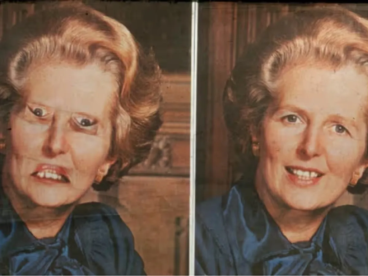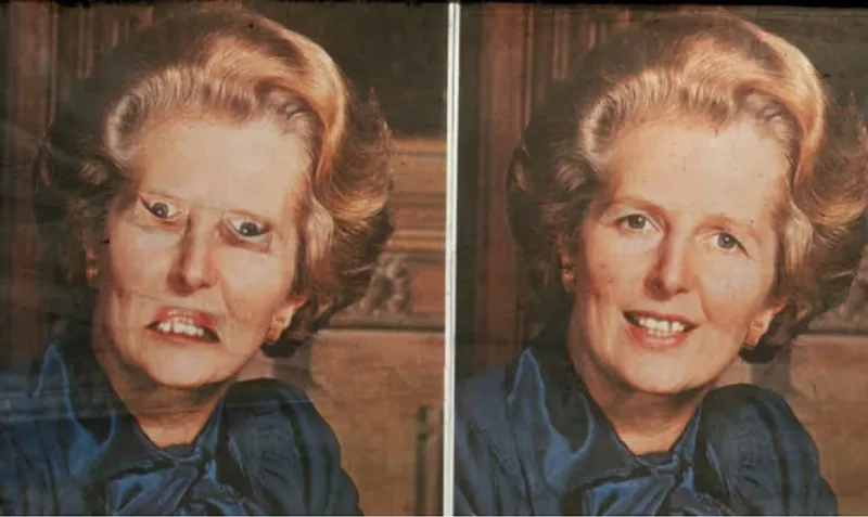 În imaginea din dreapta, ochii și gura lui Margaret Thatcher sunt inversate. Cu toate acestea, în ciuda unei schimbări atât de uriașe, nu este atât de ușor de văzut – în măsura în care, dacă prezentați imaginile pe scurt și fără a le avertiza că ceva este diferit, majoritatea oamenilor nu vor observa deloc schimbarea. Când privești imaginea în sensul corect, diferența este evidentă (și ușor terifiantă).