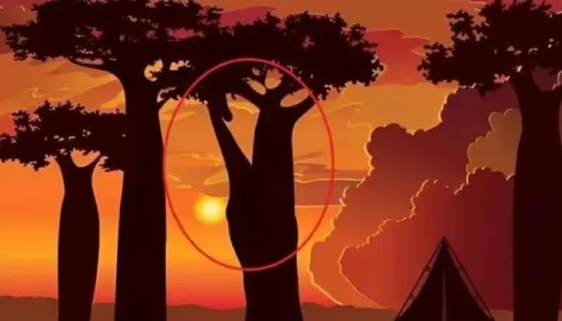 Girafa a fost ascunsă lângă copac direct în mijlocul imaginii și, datorită modului în care este siluetă imaginea, se îmbină perfect cu trunchiul și ramurile, făcându-l ușor de ratat.