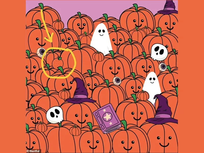 O iluzie optică, cu tematică de Halloween, te provoacă să găsești o portocală printre dovleci, în imaginea de mai jos.