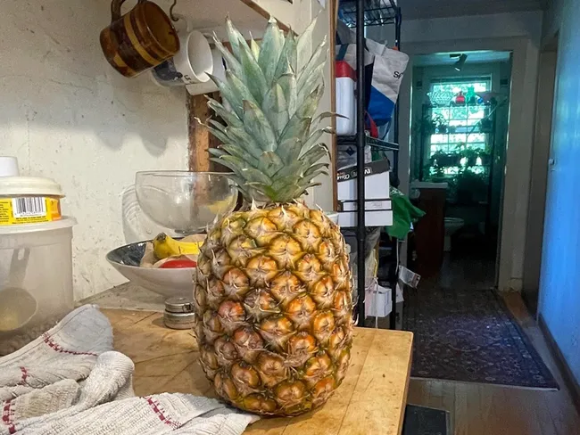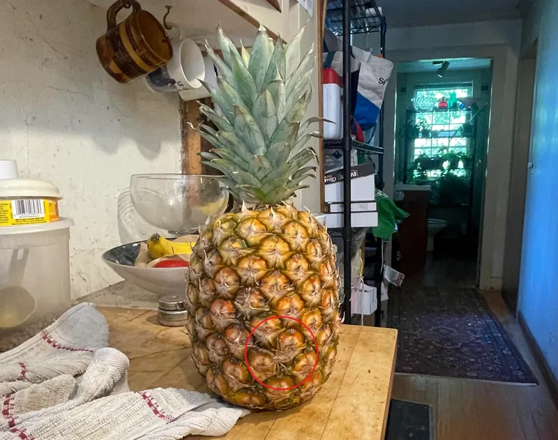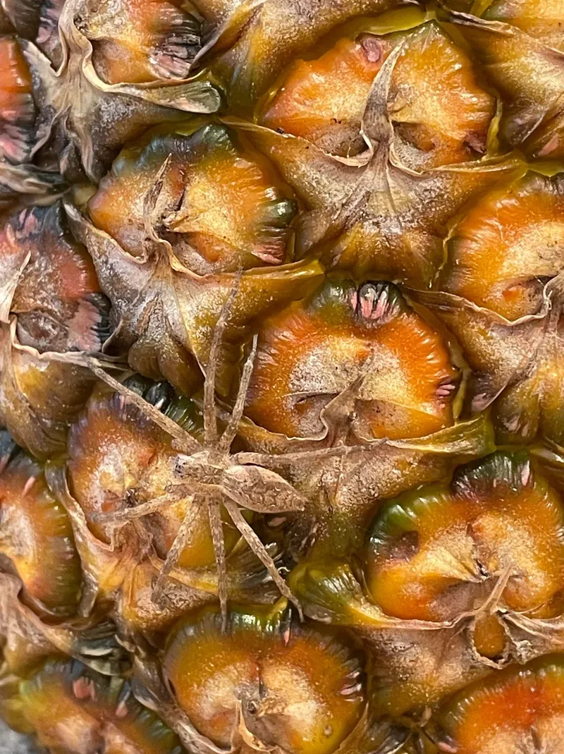 Ai reușit să găsești păianjenul? Dacă nu, uită-te puțin mai atent la centrul ananasului.