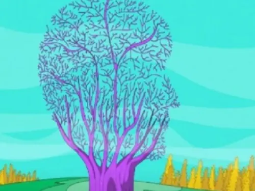 Privește cu atenție imaginea de mai sus. Este un copac minunat și neobișnuit. Împrejurimile sunt oarecum neobișnuite. Fundalul este iarbă verde, cu copaci galbeni îndepărtați vizibili. Copacul la care te uiți este un copac violet unic. Mulți oameni îl pot confunda cu o față.