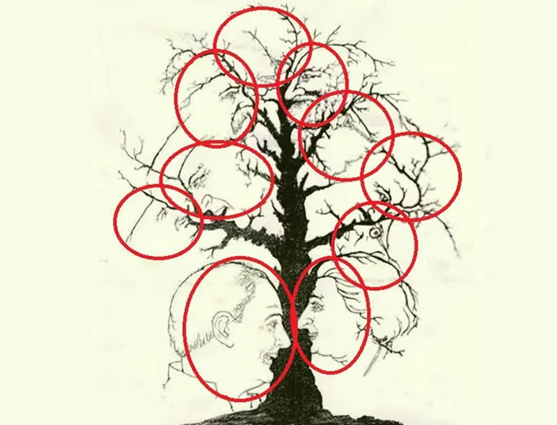 O iluzie optică te provoacă să găsești 10 fețe, ascunse într-un copac. Dacă rezolvi puzzle-ul în 10 secunde, înseamnă că ai un spirit de observație dezvoltat.