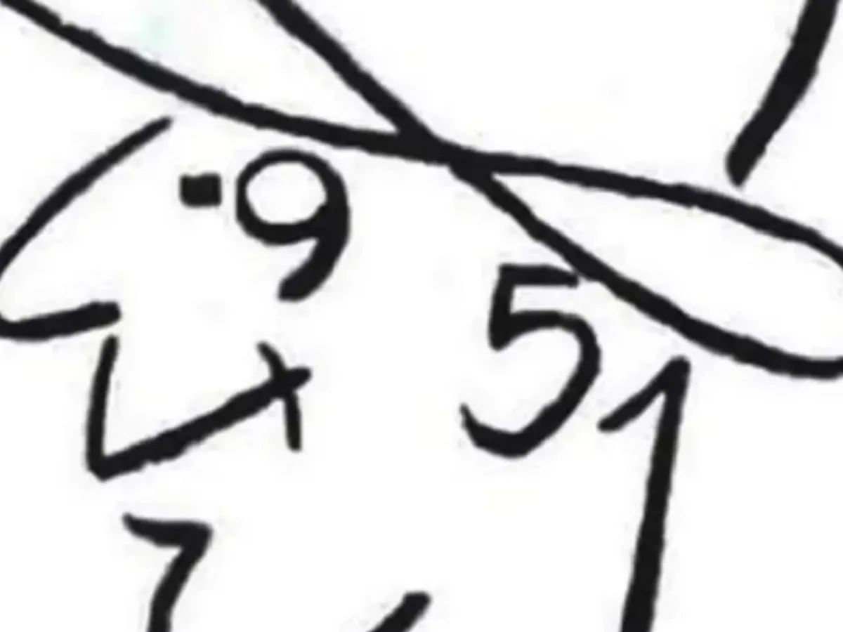 Poza din fața ta este un desen alb-negru cu ceea ce arată ca un domn cu o pălărie de cowboy. Creatorul conținutului a provocat spectatorii să afle câte cifre alcătuiesc chipul bărbatului din desene animate.