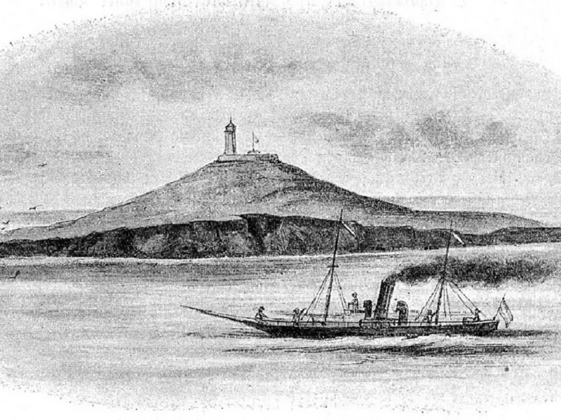 Insula Șerpilor, în 1896, cu primul bric Mircea trecând pe lângă ea - Foto: arhiva
