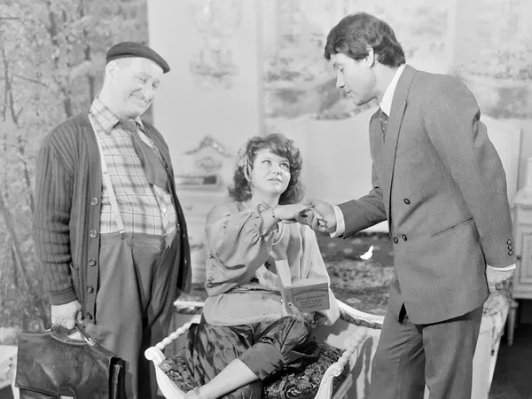 Împreună cu neuitatul Amza Pellea și „fiica” acestuia din „Nea Mărin miliardar”, aproape de scenele finale ale filmului - Foto: Studiourile Buftea