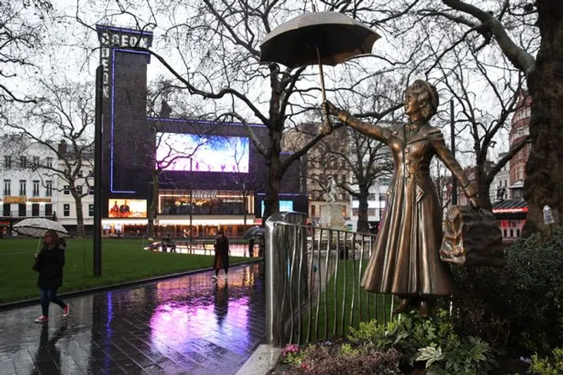 Tot în Leicester Square, se află statui din bronz ale altor personaje britanice legendare, precum Marry Poppins, Mr. Bean și Paddington Bear.