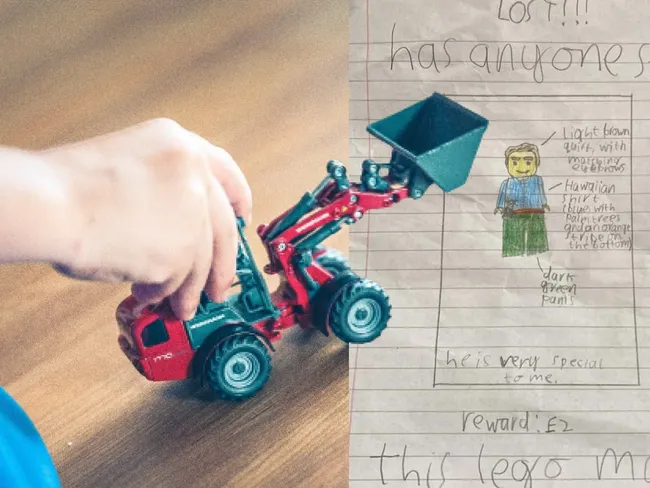 Un copil de zece ani care și-a pierdut jucăria iubită "omulețul Lego". El și-a găsit figurina, după ce a creat un poster de "persoană dispărută" pentru aceasta.