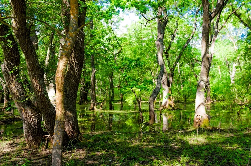 Printre plopi, fagi, stejari și sălcii, puteți vedea liane agățate de copaci sau încolăcite în jurul trunchiurilor lor, mai mult de zece specii de orhidee, cai sălbatici pășunând sau plimbându-se și singura rezervație de mangrove din Europa.