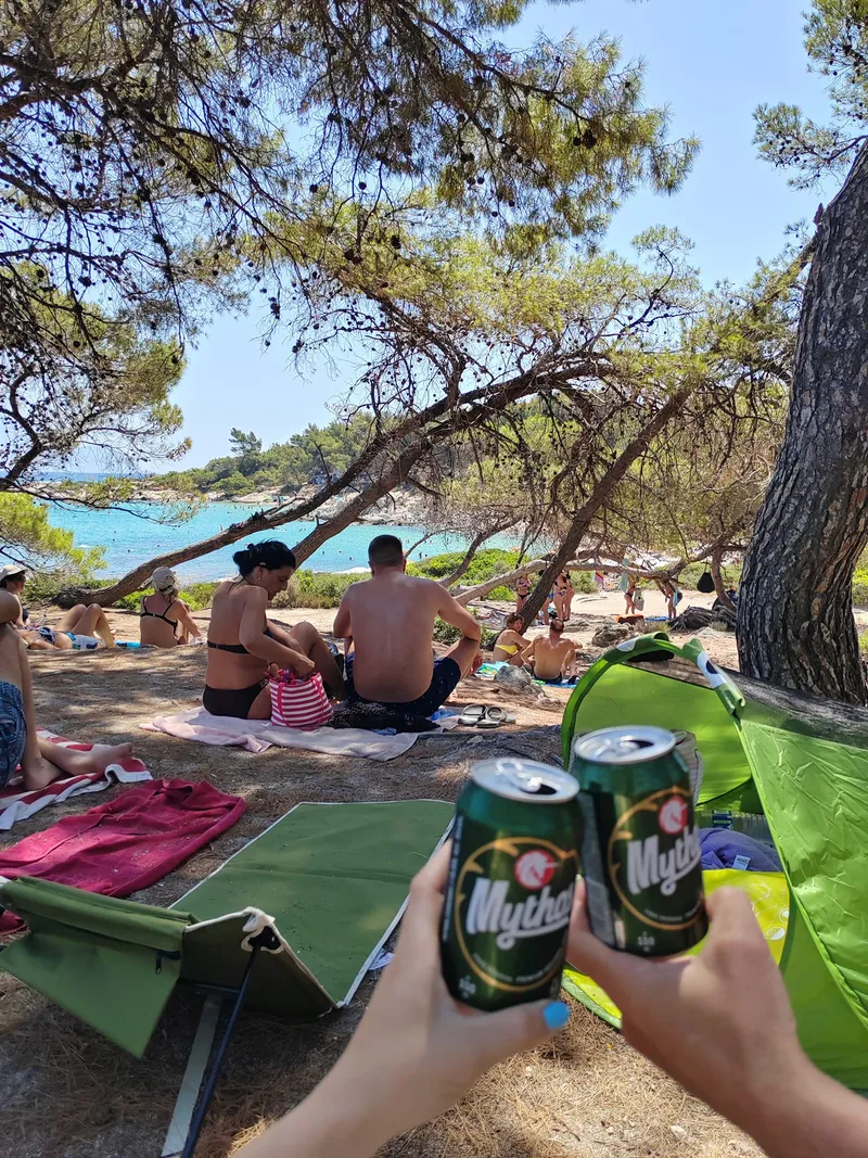 Cum a fost vacanța în Sarti: cafea 5€, mancarea cam la 15€, berea 7€, pe plajă