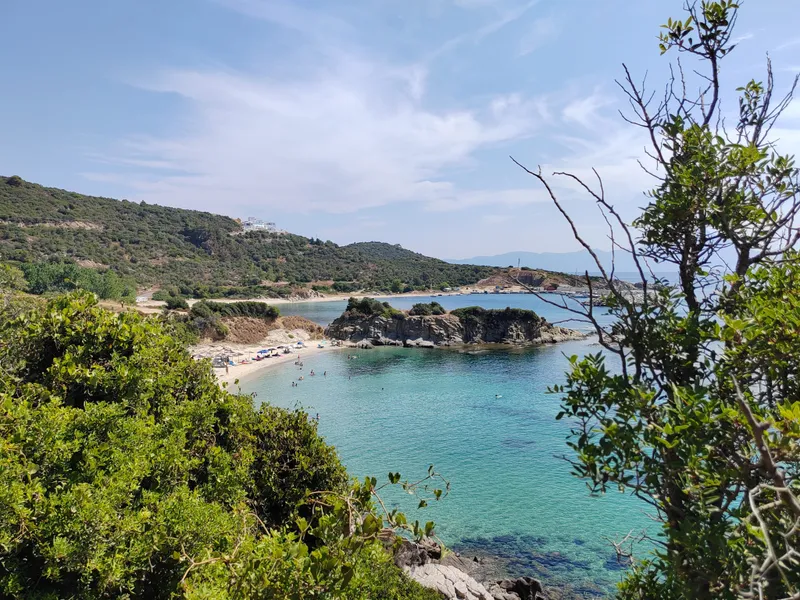 In apropierea cazarii sunt 2 plaje mai mici: una salbatica si una amenajata unde poti sta pe sezlong pt o consumatie (plaja Achlada). Nu stiu sa zic cat de mare/mica pt ca noi am avut 'norocul' sa nu aiba curent 2 zile si am stat pe moca ... Dar am carat dupa noi ce aveam nevoie. Bineinteles, mai e si plaja din Sarti, dar noi le-am preferat pe astea mai retrase. Mergeam doar seara la plimbare si aerosoli.