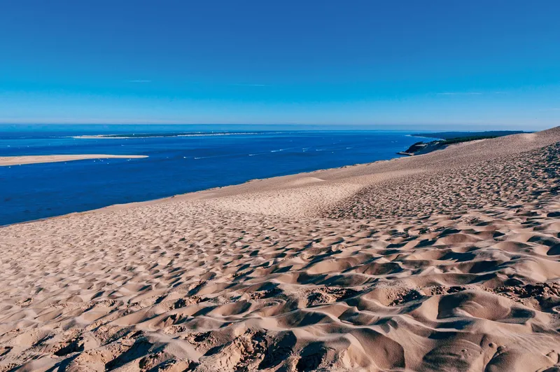 Pe malul Golfului Biscay, pe coasta de vest a Franței, se ascunde o altă plajă intimă. Situată la circa nouă kilometri de Arcachon, „Dune du Pyla“ sau „Dune du Pilat“ oferă un peisaj fascinant, de plin deșert, fiind amplasată chiar la baza celei mai mari dune de nisip din Europa, cu acelasi nume, care atinge o înălțime de 110 metri. Iar dacă aveți noroc de cer senin, puteți zări și Pirineii. Mai mult, Bordeaux-ul, patria renumitelor vinuri roșii, se află la numai o azvârlitură de băț.