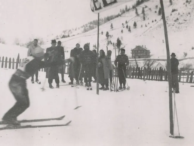 Prima coborâre pe pârtia Olimpia, în 1941