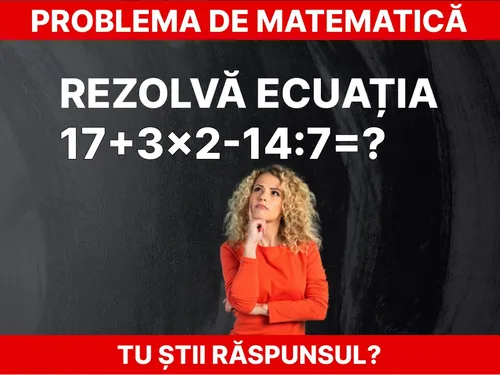 Problema de matematică de azi este una dintre cele mai simple provocări. 17+3x2-14:7=? Trebuie rezolvată în 15 secunde.