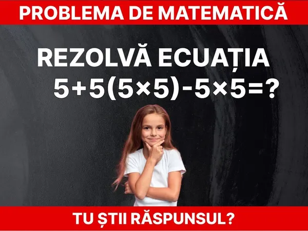Problema de matematică în care cifra 5 este trecută prin mai multe operații i-a pus în încurcătură pe mulți care au încercat să o rezolve. Răspunsul este simplu, iar calculul este ușor de realizat. TRebuie doar să nu pierdeți din vedere o regulă.