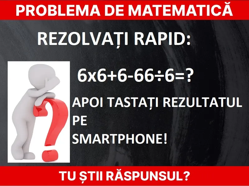 Problema de matematică de azi este cu cifra 6 trecută prin 4 operații. Rezultatul este unul simplu. După ce l-ai găsit tastează-l pe smartphone. Ai văzut ce se întâmplă?