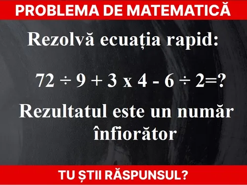 Citește și: Problemă de matematică. Rezolvă ecuația: 44-60÷5+2-16÷2=? Rezultatul este un număr cu un sens secret