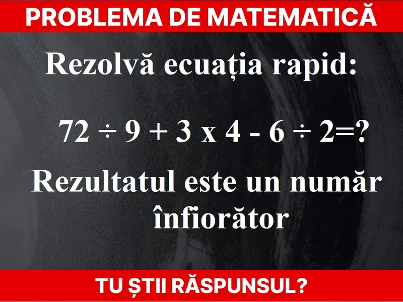 Problema de matematică pe care v-o propunem este foarte greu de rezolvat rapid. Trebuie să fiți foarte atenți la ordinea operațiilor în matematică.