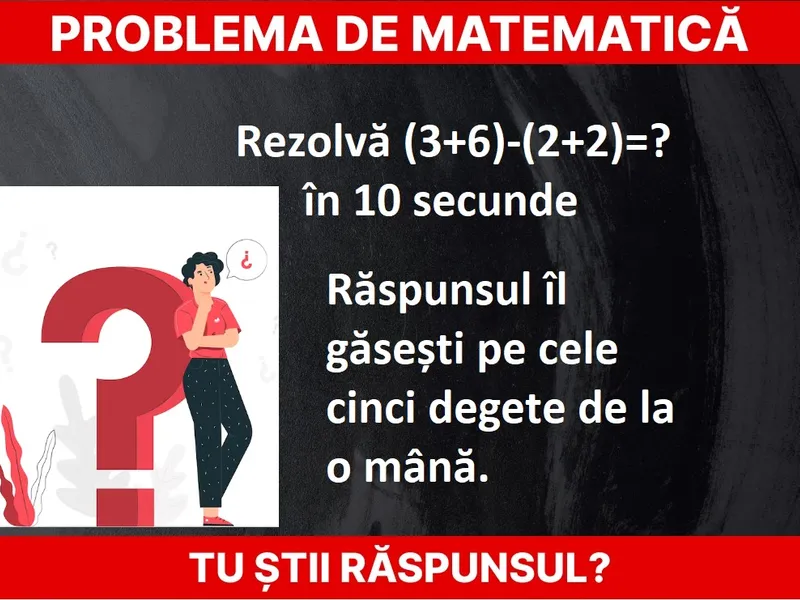 O problemă de matematică de clasa I poate fi grea pentru chiar și pentru adulți dacă nu cunosc regulile învățate în școala primară. Răspunsul este atât de simplu că se poate calcula pe degetele de la o mână.