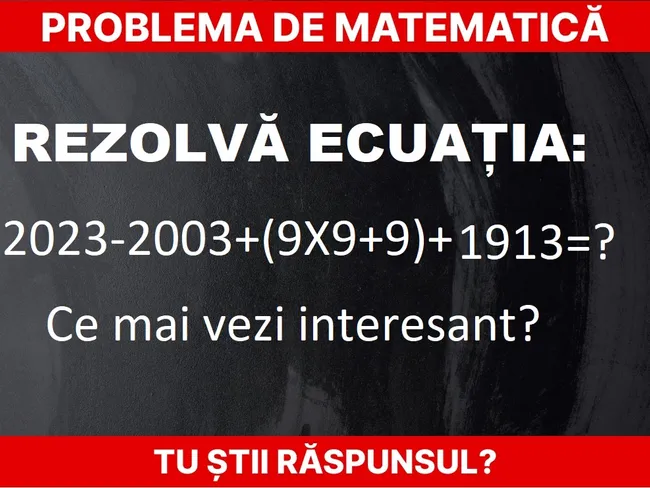 Problema de matematică în care a fost strecurată o dată istorică: 2023-2003+(9x9+9) +1913=? Te bagi?