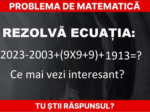 Problema de matematică de azi are și o însemnătate istorică. 2023-2003+(9x9+9) +1913=? Rezultatul ecuației ar trebui să îl dai rapid, în cel mult 15 secunde.