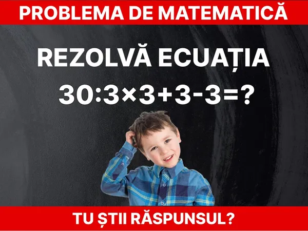 Problemă de matematică: Poți rezolva ecuația ”30:3x3+3-3=?” în 30 de secunde? Foarte puțini reușesc