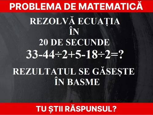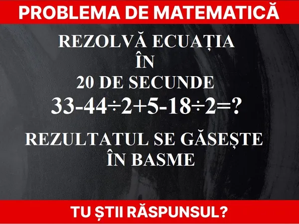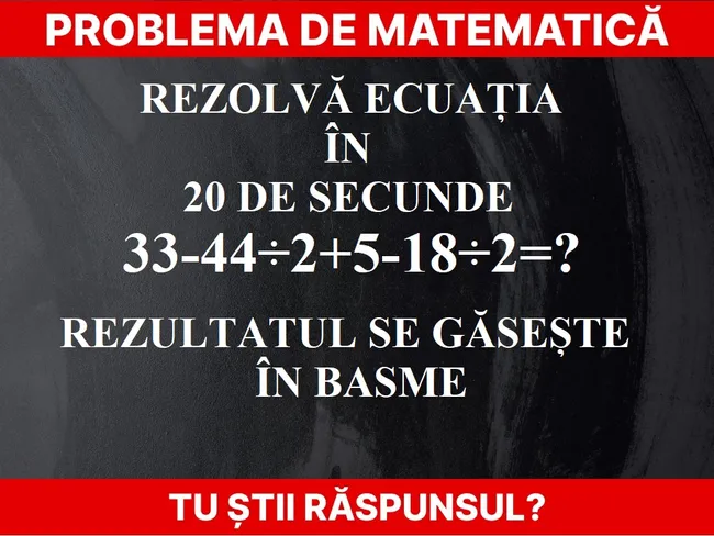 Problemă de matematică. Rezolvă 33-44÷2+5-18÷2=? rapid. Rezultatul îl găsești în basme