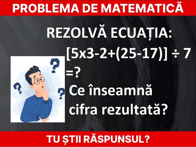 Problemă de matematică: Rezolvă [5x3-2+(25-17)] ÷ 7=? Ți-ai dat seama cum găsești răspunsul?