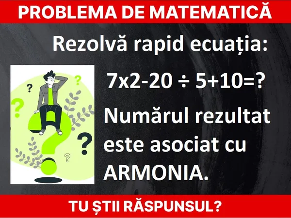 Problemă de matematică. Rezolvă 7x2-20 ÷ 5+10=? rapid. Ce crezi că înseamnă numărul rezultat