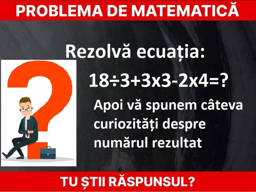 Problemă de matematică. Rezolvă ecuația 18÷3+3x3-2x4=? Apoi îți spunem curiozități despre rezultat