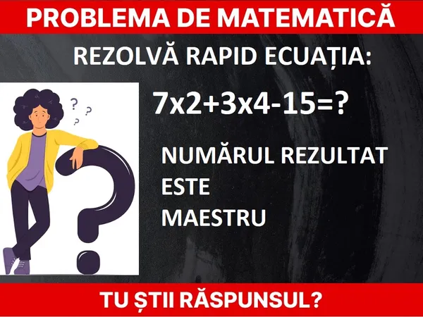 Problemă de matematică. Rezolvă ecuația: 7x2+3x4-15=? rapid. Ce credeți că înseamnă numărul rezultat