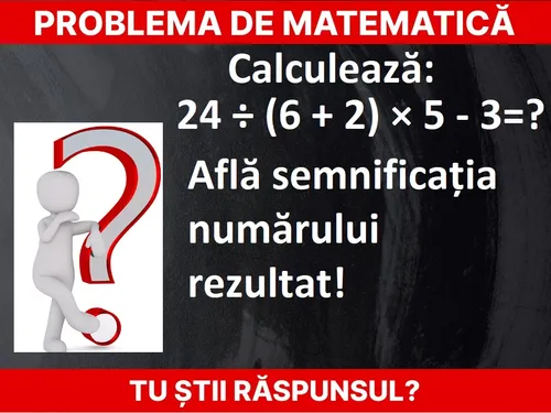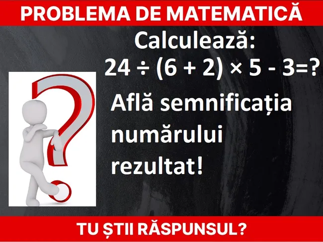 Problemă de matematică. Rezolvă rapid: 24 ÷ (6 + 2) × 5 - 3. Rezultatul, numărul puterii divine