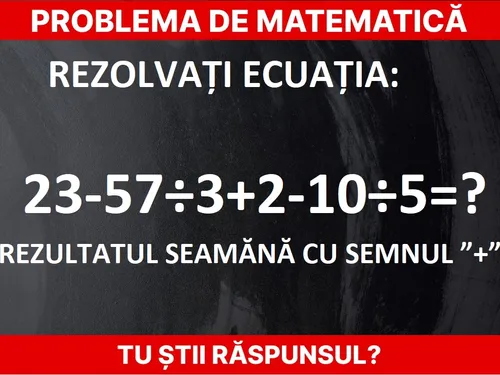 Citește și: Problemă de matematică: Rezolvă în 20 de secunde: 26-8÷4+6-45÷5=? Rezultatul, număr briliant