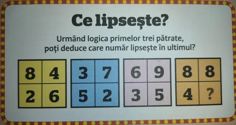 ”Urmând logica primelor trei pătrate, poți deduce ce număr lipsește din ultimul?”, este cerința problemei.