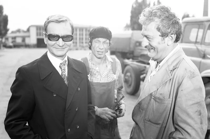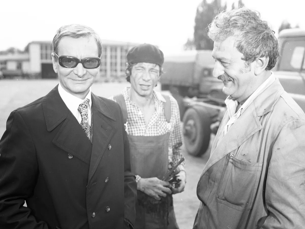 Cu Amza Pellea și Gheorghe Visu, în filmul „Tată de duminică” (1975) - Foto: Facebook/Studiourile Buftea