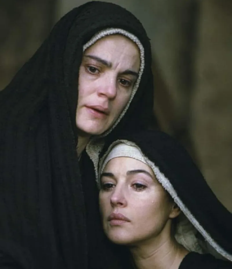 În memorabilul rol al Fecioarei Maria din filmul „Patimile lui Hristos”, alăruti de Monica Bellucci - Foto: Facebook/Colectia „Mari Actori Romani”
