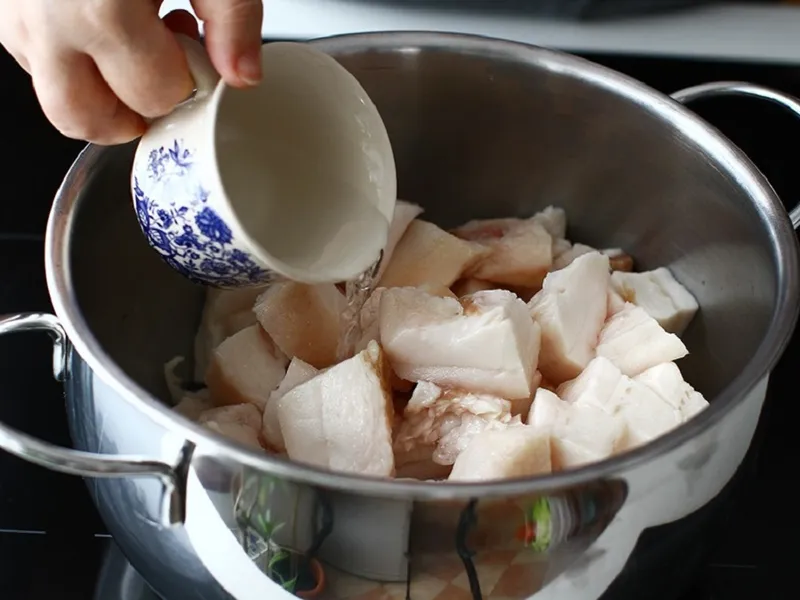Peste bucățile de slănină se adaugă și apă rece - Foto: lauralaurentiu.ro