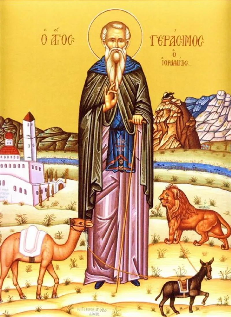 Este o poveste interesantă despre Sfântul Gherasim de la Iordan. Acesta a trăit în secolul al VII-lea. După ce s-a călugărit, s-a retras în pustiul Tebaidei unde a întemeiat un așezământ monahal, prezent și în zilele noastre.