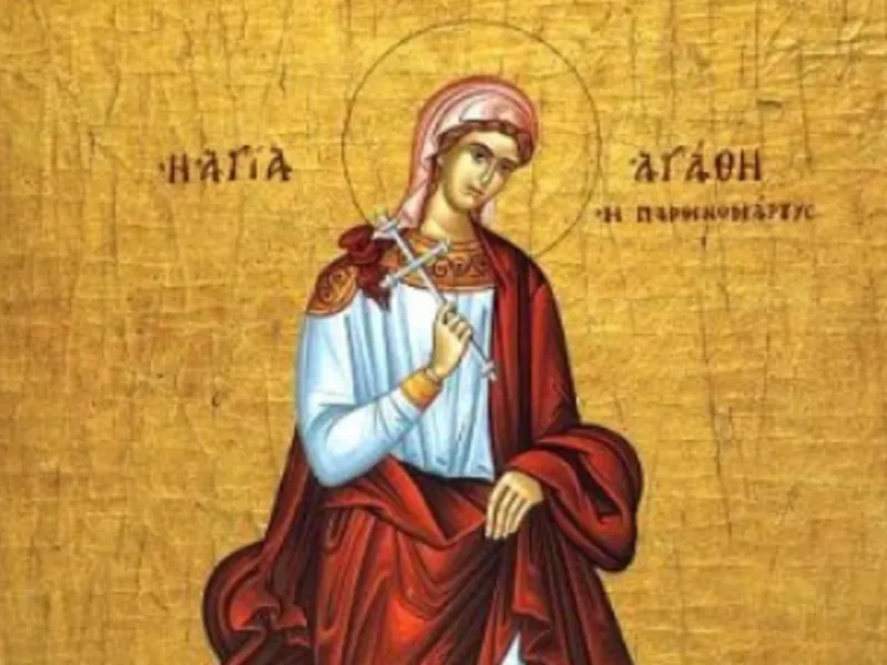 Sfânta Muceniță Agata a trecut la cele veșnice în temniță. Datorită vindecării sale, este considerata a fi ocrotitoarea femeilor bolnave de cancer la sân, scrie crestinortodox.ro.