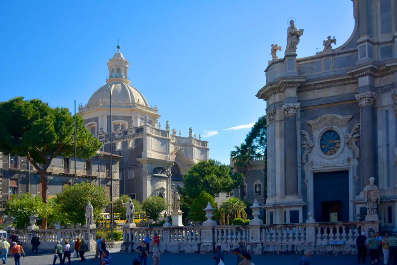 Fondată în secolul VIII î.Hr, Catania este cel de-al doilea oraș ca mărime din Sicilia după Palermo și se află în apropierea Vulcanului Etna, cel mai înalt și mai activ din Europa, motiv pentru care, de-a lungul timpului, a fost acoperit de 17 ori de lavă. Centrul vechi al orașului este o adevărată expoziție de arhitectură în stil baroc. Palazzo Biscari este, probabil, cel mai frumos exemplu de baroc catanez, iar printre obiectivele ce nu trebuie ratate se numără Piața de pește (Ph. Sandro Scalia), Mănăstirea San Benedetto, Muzeul de Artă Contemporană sau Mănăstirea San Nicolò l’Arena.