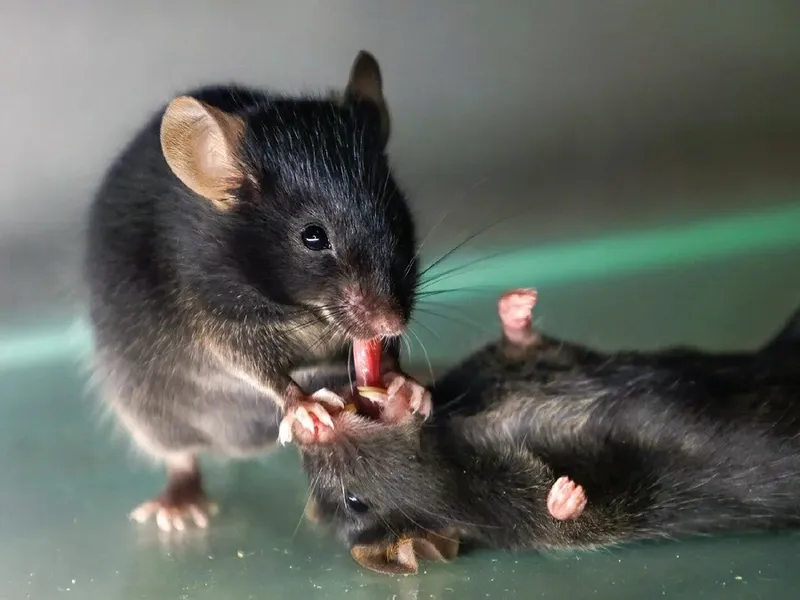 Un șoarece aplică o manevră de „prim-ajutor” unui altui șoarece inconștient - Foto: sciencealert.com