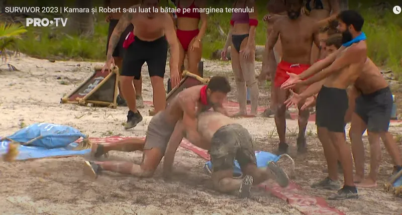 La 15 ore de la eveniment, pe canalul Survivor a apărut și clipul intitulat „Kamara și Robert s-au luat la bătaie pe marginea terenului”