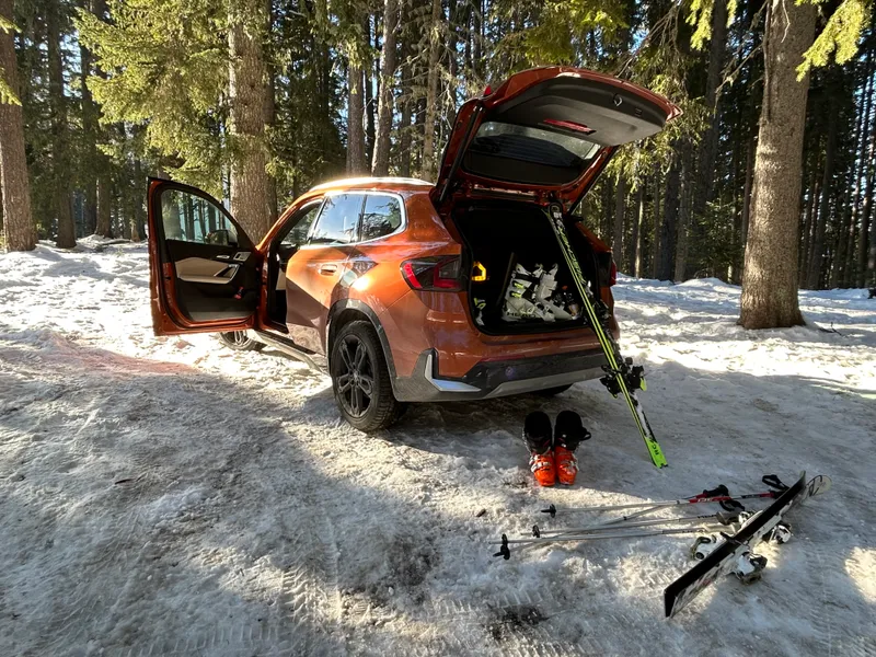 În primul rând, în cinci din cele opt zile de schi, am urcat cu mașina, noul BMW X1 23d xDrive pe care l-am testat peste 1.300 de kilometri cu un consum mediu real de 6,8 litri de motorină la 100 de kilometri. Sunt 12 kilometri, durează circa 40-60 de minute, având în vedere că se face coadă sus la plata parcării (tarif: 10 euro/zi).