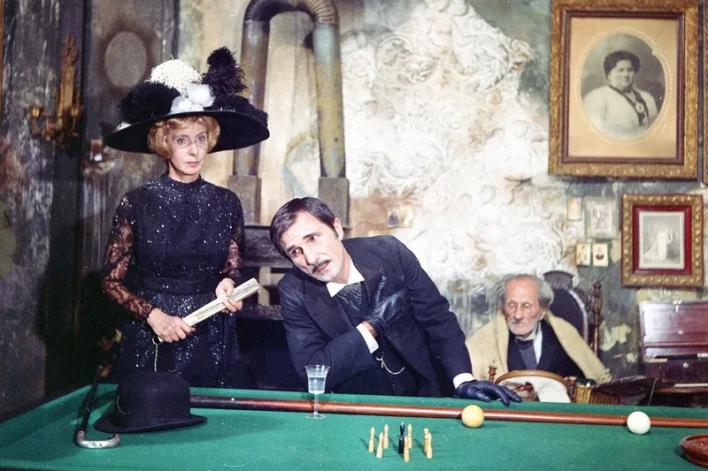 Arpad Kemeny, în plan secund, într-o scenă în care apare alături de marea actriță Clody Bertola - soția lui Kemeny în film - și de inegalabilul Gheorghe Dinică - Foto: Facebook/Studiourile Buftea